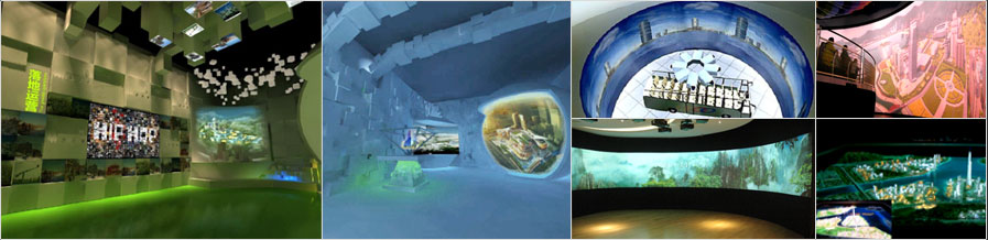 合理、恰当地运用虚拟现实和新型多媒体技术,可以事半功倍地向观众传达信息,同时更是提高企业形象与格调的最佳途径。《绿维企业展厅》项目中,绿维光影侠也采用了高科技展陈手段,诠释绿维企业文化,"创意经典"。