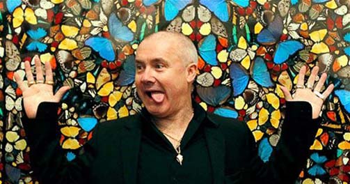赫斯特在自己作品前的留影