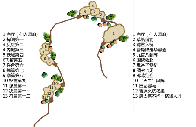 设计外观有天书,内部无字的竹简,游客通过翻阅竹简,屏幕显示无字天书的纵横术等内容。