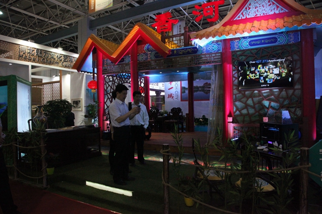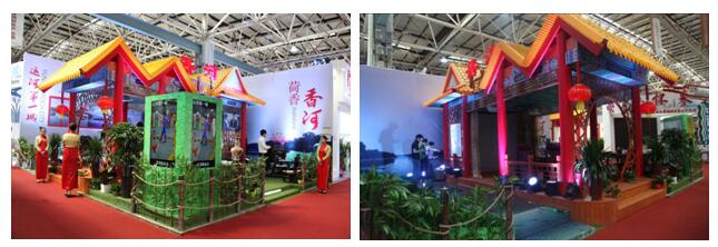 展台就是画舫,画舫凌波于北运河之上,营造出“船在水中游,人在画中走”的意境。